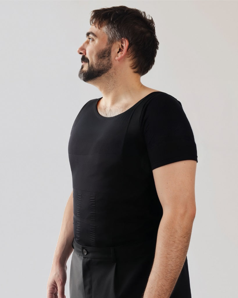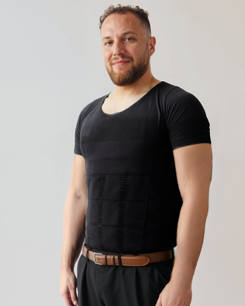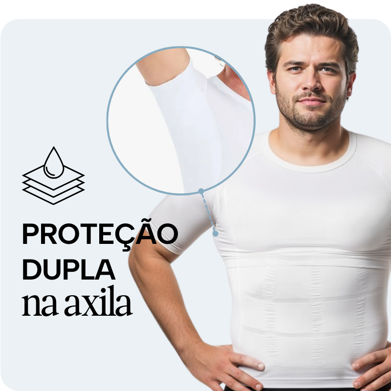A Camiseta tecnológica Nº1 que suaviza a barriga inchada e arredondada, enquanto segura o suor e mau cheiro em camisas.